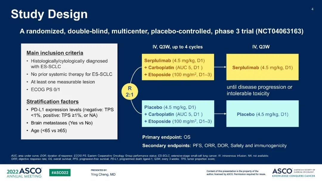 而对于外界关心的临床试验设计方面,朱俊解释,ASTRUM-005研究并没有讨巧之处。在整个临床试验设计上,H药的ASTRUM-005和阿替利珠单抗的IMpower133设计相差不多,包括入组病人,疾病进展之后进行免疫跨线治疗等。