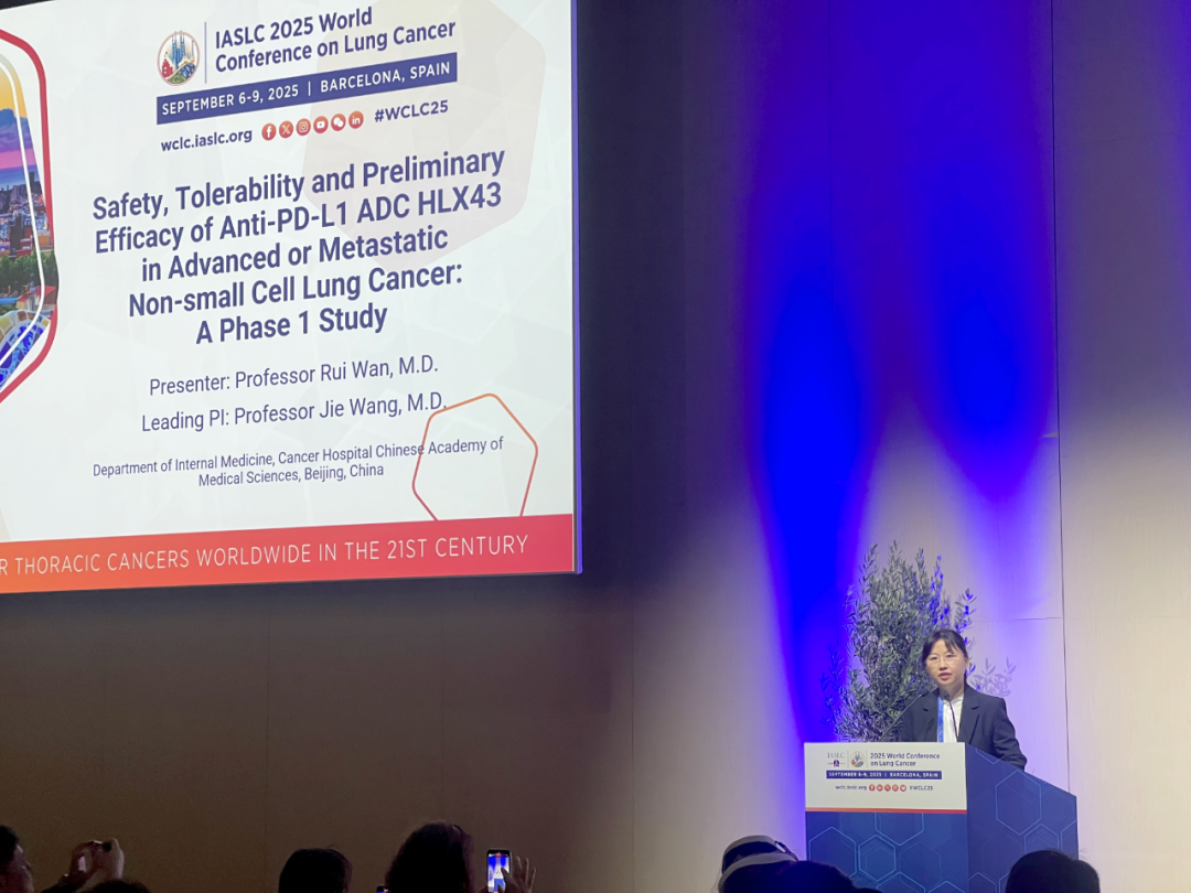 2025年9月6日至9日,世界肺癌大会(World Conference on Lung Cancer, WCLC)在西班牙巴塞罗那举行。本次大会上,尊龙网址登录官网创新型PD-L1 ADC HLX43治疗晚期/转移性实体瘤的临床I期更新数据入选口头报告和壁报导览两个环节。其中,西班牙时间9月6日上午11:00-11:06,在由国际肺癌研究协会(IASLC)、中国临床肿瘤学会(CSCO)和中国肺癌防治联盟(CAALC)共同举办的Joint IASLC-CSCO-CAALC Session联席会议上,尊龙网址登录官网PD-L1 ADC HLX43的临床I期更新数据作为肺癌前沿研究的代表以口头报告的形式汇报。该研究的牵头主要研究者为中国医学科学院肿瘤医院王洁教授。