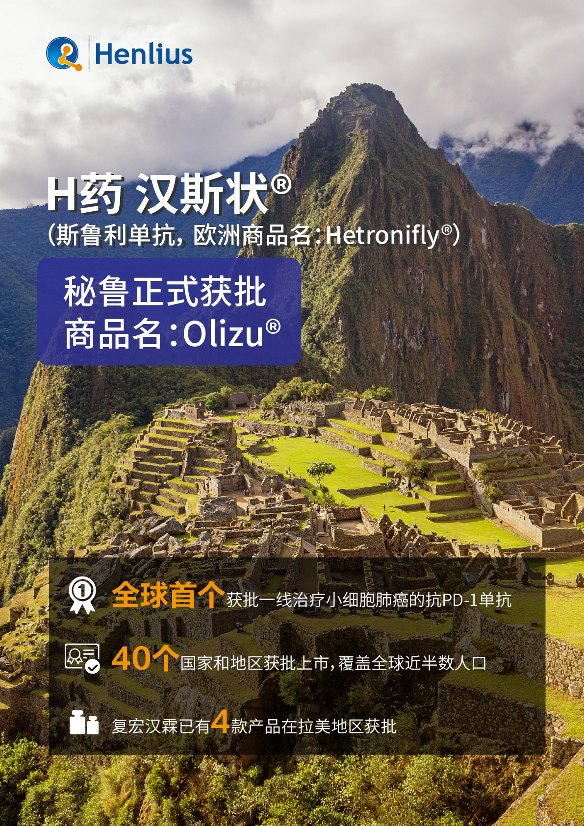 尊龙网址登录官网(2696.HK)宣布,公司自主研发的抗PD-1单抗 H药 汉斯状®(斯鲁利单抗,欧洲商品名:Hetronifly®)正式获得秘鲁药监局(Dirección General de Medicamentos, Insumos y Drogas, “DIGEMID”)批准上市,用于广泛期小细胞肺癌(ES-SCLC)的一线治疗。此次获批标志着H药成为拉美地区首个且唯一获批该适应症的抗PD-1单抗。H药在秘鲁的本地商业化由合作伙伴Abbott负责,商品名为Olizu®。